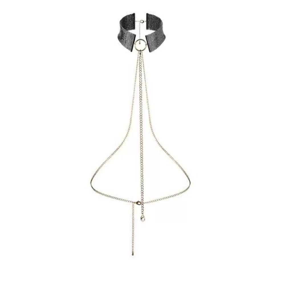 Collare Bijoux Desir Metallique NERO di BIJOUX INDISCRETS è un gioiello da usare per giochi erotici di ruolo, nel soft Bondage Sadomaso e con della lingerie elegante, una collana realizzata in maglia metallica, un collare schiava con catenella agganciabile da abbinare ad una sexy lingerie. Elegante decorazione per il corpo composta da un collarino in rete metallica a cui è attaccata la catenina regolabile sempre in metallo che scende lungo il busto e la vita.