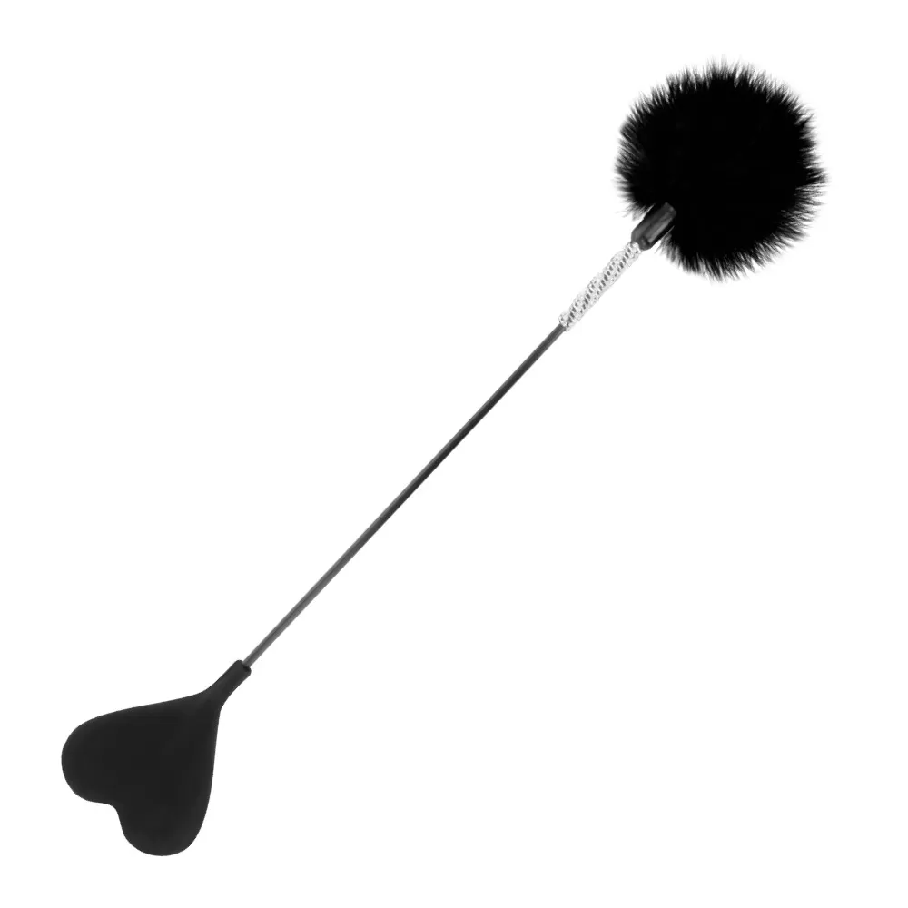 Scopri Darkness Frustino Doppio, l’accessorio BDSM perfetto per chi desidera trasformare ogni momento di intimità in un’esperienza di piacere intensa, seducente e coinvolgente. Lungo 40 cm, questo frustino unico combina eleganza, funzionalità e trasgressione: da un lato morbide piume nere pensate per solleticare delicatamente le zone erogene e i punti sensibili del corpo, dall’altro una paletta a forma di cuore ideale per lo spanking leggero o deciso.