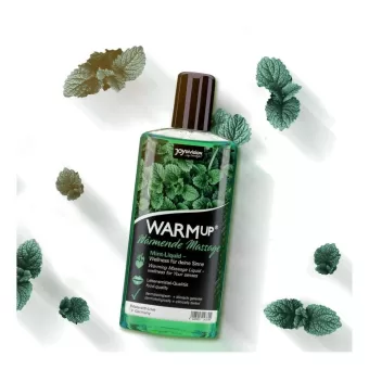 WARMup Menta di JoyDivision è l'olio da massaggio sensuale dal dolce sapore di menta, dedicato alla coppia dal sapore ricco, con effetto riscaldante ed avvolgente ideale per aumentare la sensazione di calore con il corpo e le parti intime per una percezione sessuale davvero soddisfacente. Gli aromi sensuali stimolano l’olfatto ed inebriano i sensi, la viscosità dell’olio serve inoltre da coadiuvante per il rapporto intimo. Fragranze e sapori sensuali con aromi identici alla natura. Un lubrificante riscaldante commestibile. Clinicamente e dermatologicamente Testato. Formato 150 ml.