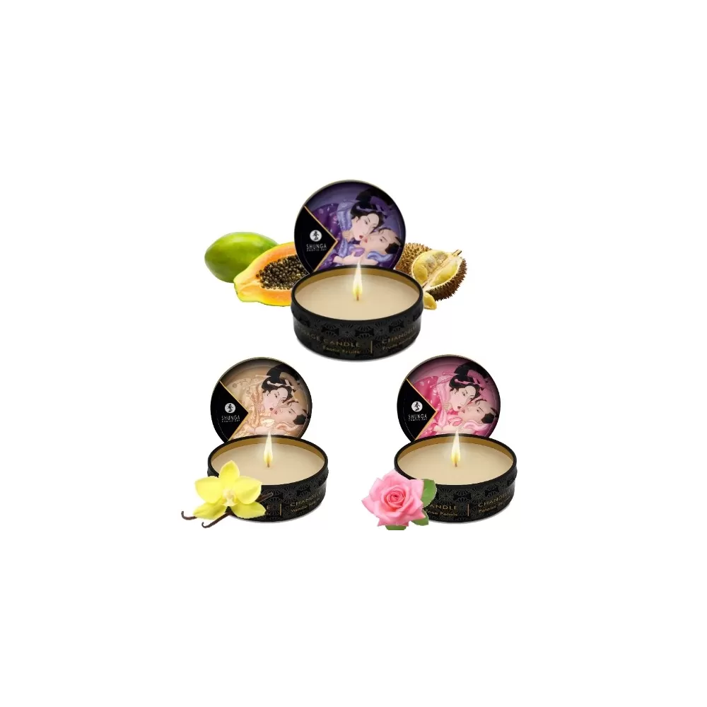 La Mini Massage Candle Libido Exotic Fruits di Shunga è una candela da massaggio da 30 ml che trasforma ogni momento in un rituale sensoriale. Realizzata con oli 100% naturali, si scioglie in un olio tiepido e setoso, ideale per massaggi rilassanti e avvolgenti. La sua fragranza afrodisiaca ai frutti esotici risveglia i sensi e crea un’atmosfera intima e irresistibile.