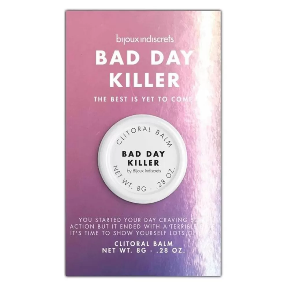 Bad Day Killer di Bijoux Indiscrets è il balsamo massaggiante pensato per trasformare ogni momento in un rituale sensuale e rilassante. Un olio multifunzione che puoi usare per profumare l’ambiente e creare l’atmosfera perfetta, oppure come gel massaggiante per coccolare il corpo e risvegliare il piacere. La sua formula con oli 100% vegetali – olio di mandorle dolci, olio di cocco e burro di karité – nutre la pelle lasciandola morbida e vellutata. Il profumo di anice stellato, dolce e deciso, avvolge i sensi e stimola il desiderio. Racchiuso in un pratico formato da 8 g, è ideale da portare sempre con sé o da regalare. Un piccolo alleato per trasformare una giornata no in un momento di puro benessere e sensualità.