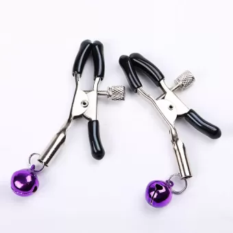 Ti presentiamo i morsetti per capezzoli della linea GUILTY TOYS. Le pinze sono rivestire da uno strato nero di gomma antiscivolo per evitare che questi possano danneggiare il capezzolo e per essere più confortevoli e sicuri allo stesso tempo, in metallo con campanelline colore viola. Queste pinze per capezzoli hanno anche una regolazione.