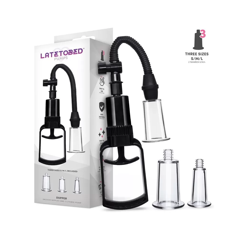 Dupper è la nuova arrivata di Latetobed Pumps. Dupper è una pompa per clitoride dotata di tre coppe di diverse dimensioni adattatibili. Dupper è stato creato per la stimolazione del clitoride e dei capezzoli, due zone ipersensibili del corpo, sempre in sicurezza. Offre stimolazione sicura e precisa. Rimovibile e leggera, garantisce pulizia facile e comfort ovunque.